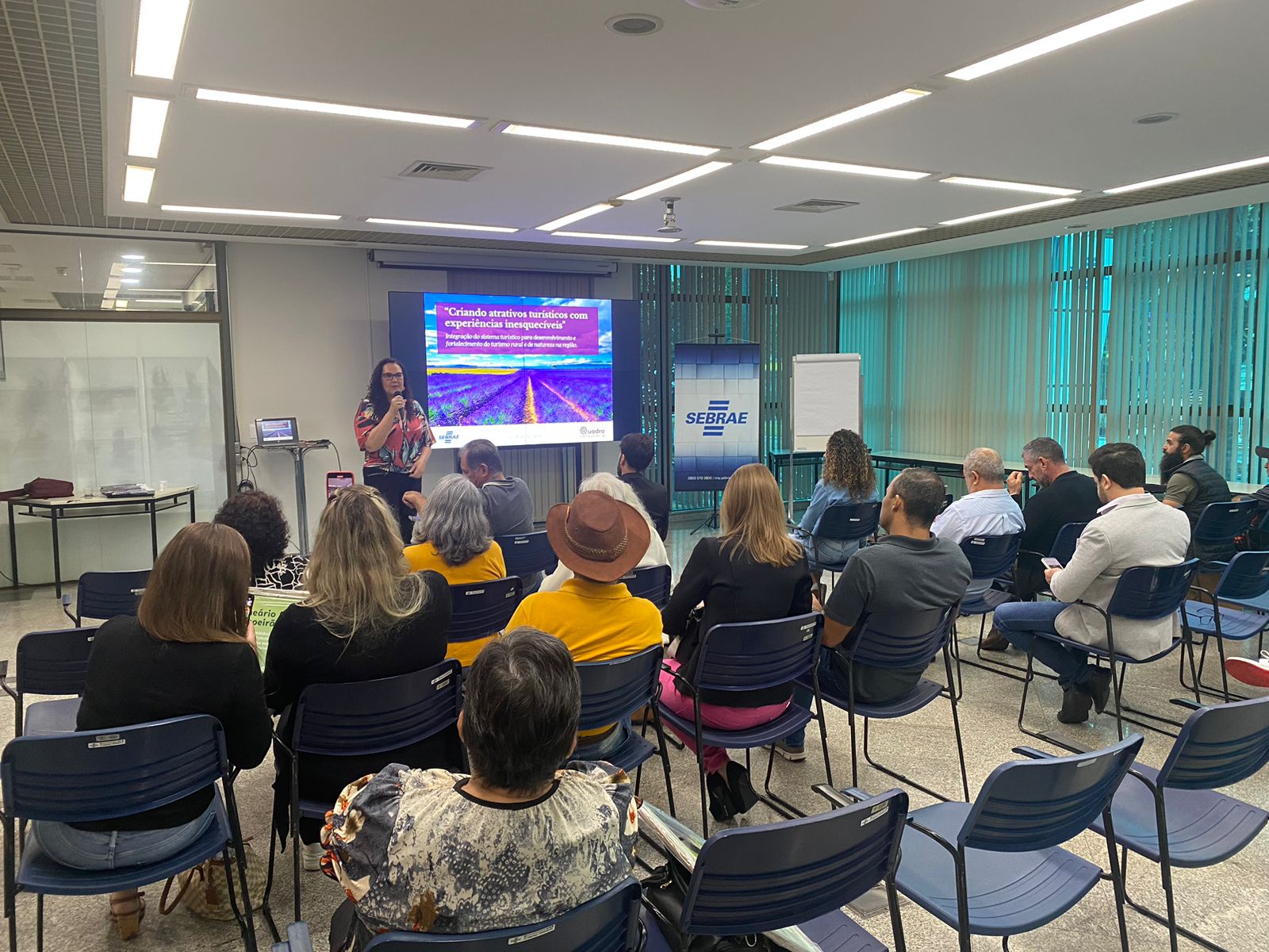 Durante a palestra “Criando atrativos turísticos com experiências inesquecíveis”, a consultora do Sebrae/MS, Luciane Quadro, compartilhou as ações que o programa Transforma Turismo oferece para auxiliar os empresários na criação de produtos e experiências atrativas. Ela ressaltou a importância de trabalhar em conjunto para complementar as experiências dos turistas. “O turismo não vive sem o outro, sem o parceiro, sem a instância de governança, sem o vizinho do lado que complementam as experiências dos turistas”, disse. A consultora também trouxe ferramentas e passos para os empreendedores avaliarem suas propriedades e transformá-las em locais para receber turistas, desde a criação de produtos atraentes até a divulgação.