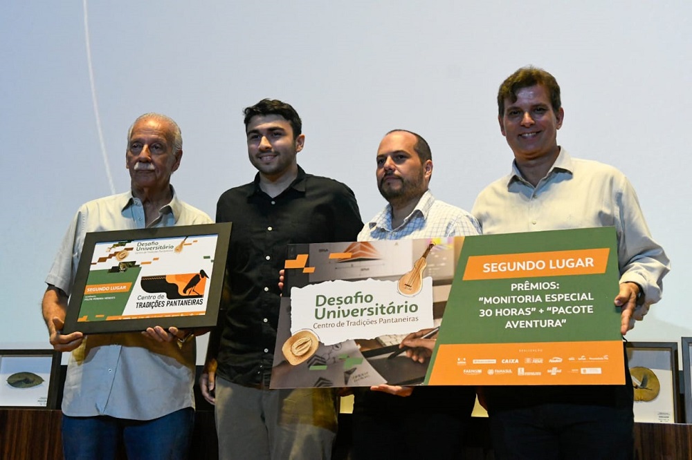 Na data, os conselheiros do Sebrae/MS, Alfredo Zamlutti, presidente do Sistema FAEMS e Fernando Ribeiro Martins, presidente da Associação das Microempresas e Empresas de Pequeno Porte do Estado de Mato Grosso do Sul (AMEMS), além do diretor de Operações do Sebrae/MS, Tito Estanqueiro, entregaram o prêmio para o universitário. Na ocasião, também foram reconhecidos os acadêmicos Felipe Pereira Mendes (UCDB) e Valeria das Dores Silva Oliveira (UEMS), que ocuparam, respectivamente, os 2º e 3º lugares.