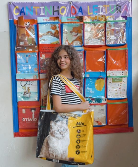 Para Maria Clara, que estuda na Escola Municipal São Sebastião, a metodologia foi uma forma de reaproveitar itens que seriam descartados e dar um novo significado para o produto. “A minha turma produziu sacolas ecológicas, feitar se saco de ração de animais. Esses materiais iram ser jogados fora, mas nós demos uma nova utilidade para ele e agora as pessoas podem usar para inúmeras finalidades. Nós reforçamos as sacolas com uma costura que segura a alça”, comentou a aluna.