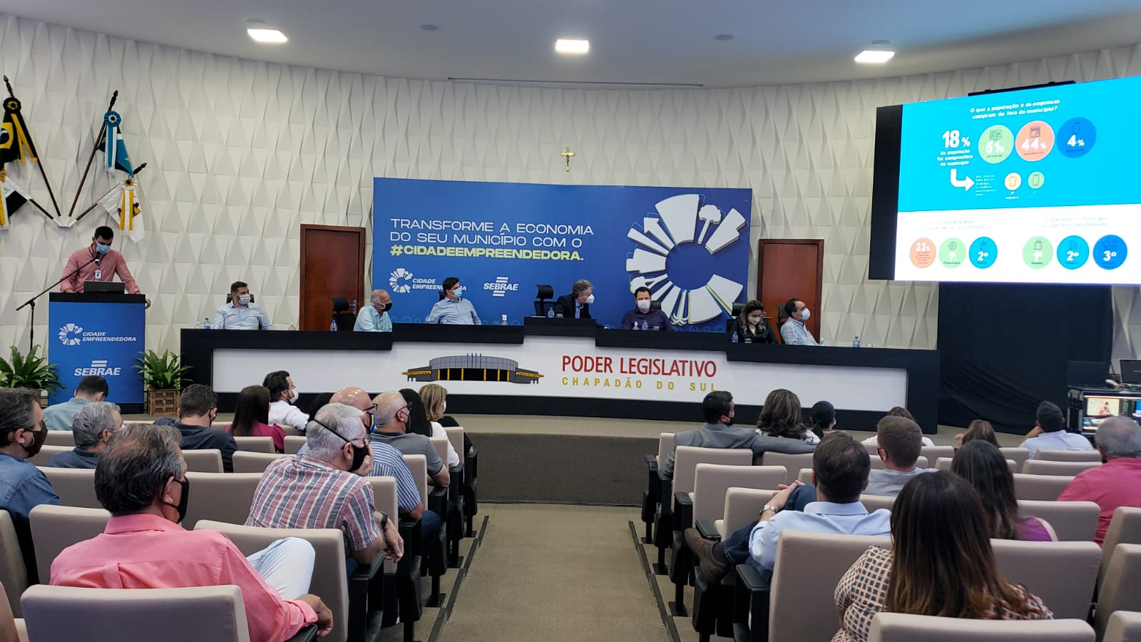 Restrito aos convidados, por conta dos protocolos de biossegurança, o evento foi realizado Câmara Municipal de Chapadão do Sul e transmitido, ao vivo, por meio dos canais da prefeitura no Youtube e Facebook. Como representante do Sebrae/MS, esteve presente também o conselheiro do CDE Alfredo Zamlutti, presidente da Federação das Associações Empresariais de Mato Grosso do Sul (FAEMS).