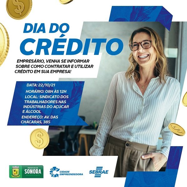 Sabendo que crédito é um assunto que gera muitas dúvidas nos empresários, por meio do programa Cidade Empreendedora, o Sebrae/MS, em parceria com a Prefeitura Municipal e Associação Comercial e Agroindustrial de Sonora (ACIAS), irá promover no município, o “Dia do Crédito”, que tem a finalidade de instruir os empresários locais sobre como adquirir crédito e a melhor forma de aplicá-lo. O evento será realizado no Sindicato dos Trabalhadores nas Indústrias do Açúcar e Álcool de Sonora – das 8h às 12h, voltado para micro e pequenas empresas.