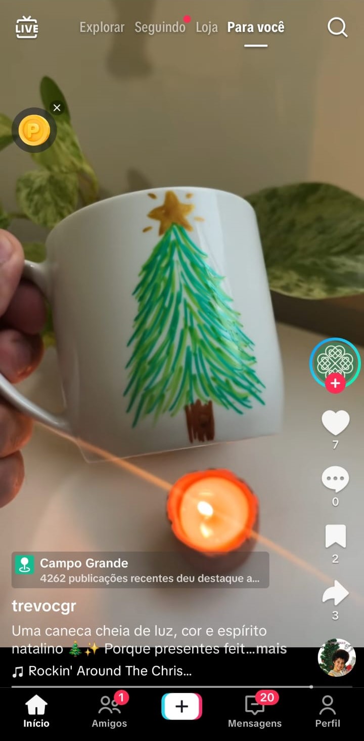 Recentemente, a Trevo Personalizados aproveitou uma trend temática de Natal, com a personalização manual de uma caneca ilustrada com o tradicional pinheiro natalino. O conteúdo foi acompanhado do uso estratégico de hashtags e, segundo o empreendedor, tem contribuído para aumentar a procura por encomendas de presentes neste período do ano.