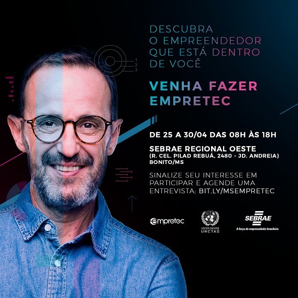 Entre os dias 25 e 30 de abril, o Sebrae/MS promove, no município de Bonito, o Empretec – um curso imersivo onde serão trabalhadas as 10 características do comportamento empreendedor. As inscrições já estão abertas para a capacitação, que será realizada no Escritório Regional do Sebrae (R. Cel. Pilad Rebuá, 2480).